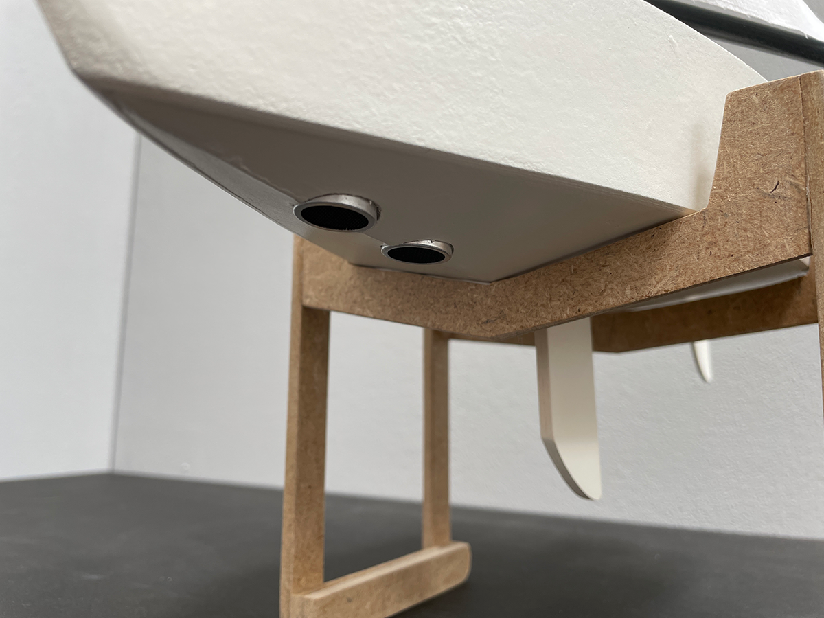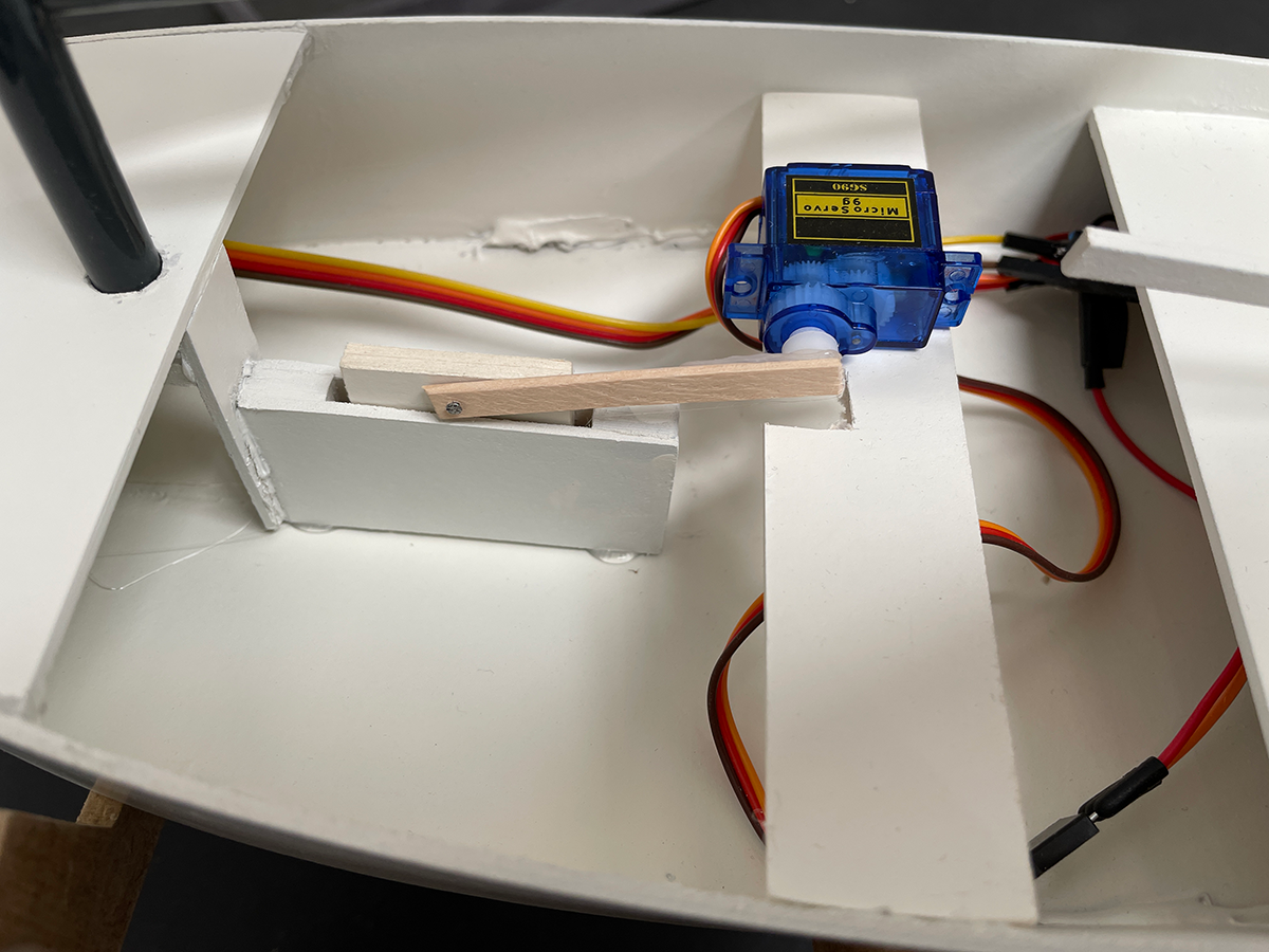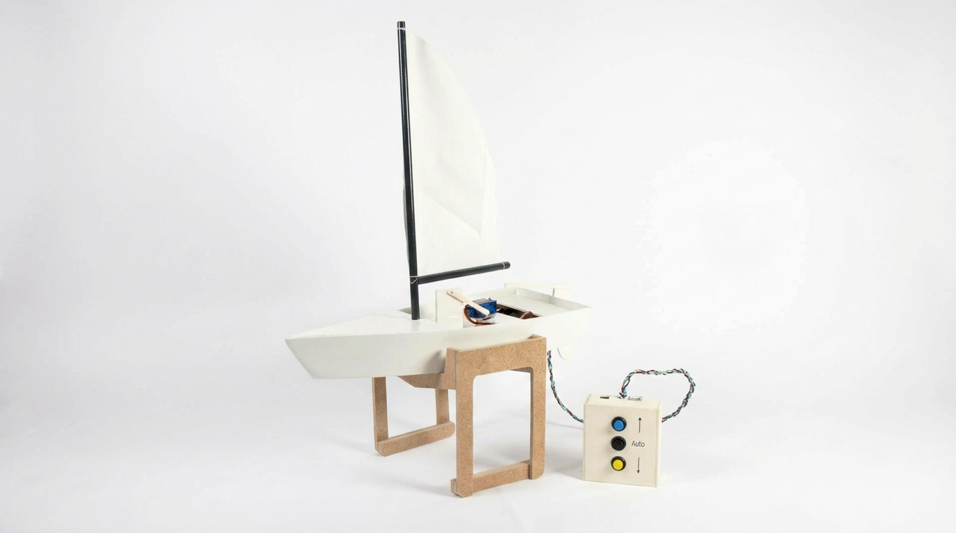 How can technology make safety and handling in sailing more intuitive? In this project during my second semester at Aachen University of Applied Sciences, I developed a system that protects dinghies from grounding. The concept uses an ultrasonic sensor integrated into the bow that scans the water depth beneath the hull in real time. As soon as an obstacle or shallowing water is detected, the system calculates the remaining distance to the centerboard tip. A servo motor handles the physical response and automatically raises the centerboard to prevent a collision. Via an interface remote control, the user has control and can choose between an autonomous automatic mode and manual control (Up/Down).